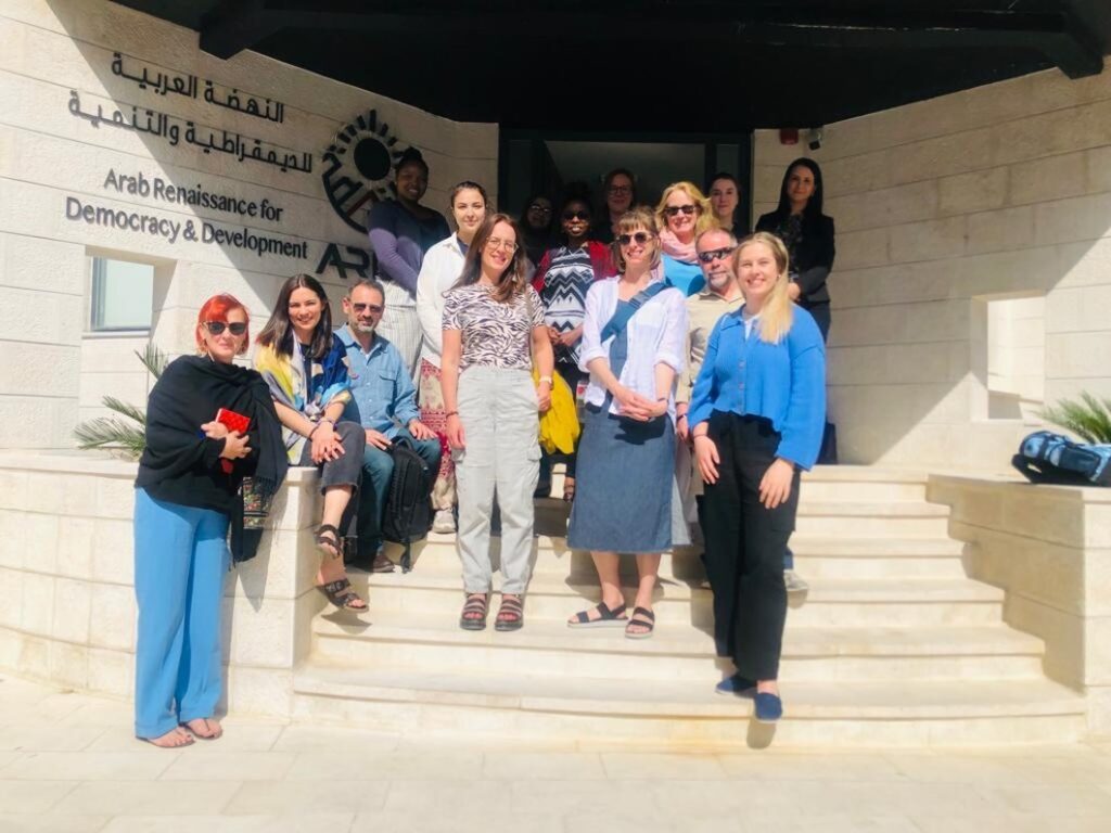 Jordan’s unique perspective and experience with regard to observing forced displacement caused by regional and international crises and the intricate dynamics between local and international organizations in the humanitarian and development sector has attracted the attention of a group of 15 students pursuing their master’s degree in “Conflict, Humanitarianism, and Development” at the prestigious Bath University which was recognized as the “University of the Year” by the esteemed Good University Guide 2023. These students, accompanied by Katharina Lenner from the Department of Social and Policy Science, met with Samar Muhareb, the director of the Arab Renaissance for Democracy and Development (ARDD), on Wednesday, May 10th.