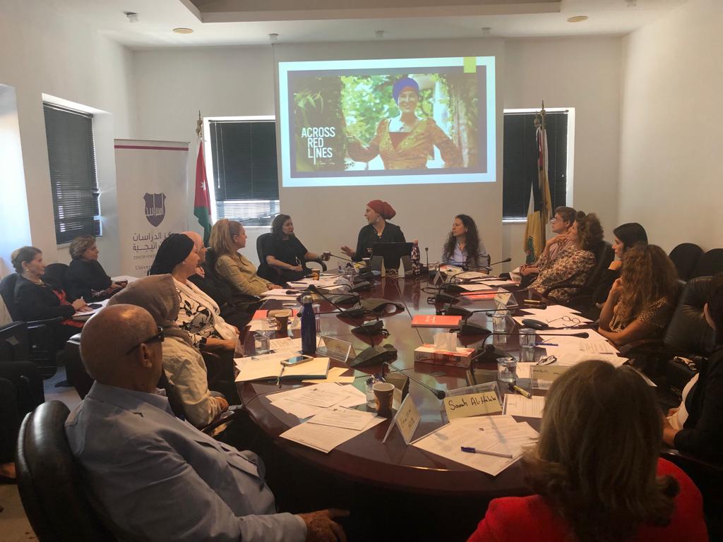 The sessions were followed by an open discussion with the participants, (The Jordanian National Commission for Women CEO, Dr. Salma Nims pointed out that Jordanian feminist/women’s rights activists often face unrelenting, multi-dimensional criticism; adding that Certain voices that are associated with elite institutions have a significant influence on discourse and have the power to control the narrative; and calling on women’s movement to establish clout and invest in knowledge production.