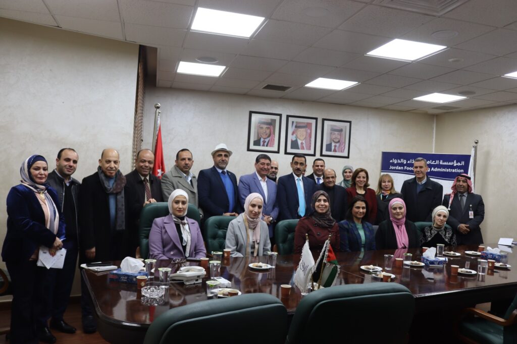 To understand the control mechanisms related to narcotic and psychotropic drugs and chemical precursors, and the resulting abuse thereof, members of the National Alliance for Combatting Narcotics, which is affiliated with the Justice Sector Support Forum, visited the Jordan Food and Drug Administration (JFDA) on Monday, January 29, 2024, to review the organization’s supervisory role and discuss ways of joint cooperation.