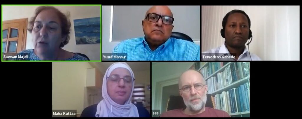 “This session aims to shed light on the competing priorities that pertain to responding to refugee crises in the region, as well as the impact of COVID-19 on various communities in the region,” said HE Senator Dr. Sawsan Al Majali, the series moderator as she welcomed the guest speakers HE Dr. Yusuf Mansur Economist and former Jordanian Minister of State for Economic Affairs, Maha Kattaa, International Labor Organization (ILO),Baptiste Hanquart, Jordan INGO Forum (JIF), Svein Erik Stave and Tewodros Aragie Kebede, The Fafo Research Foundation.
