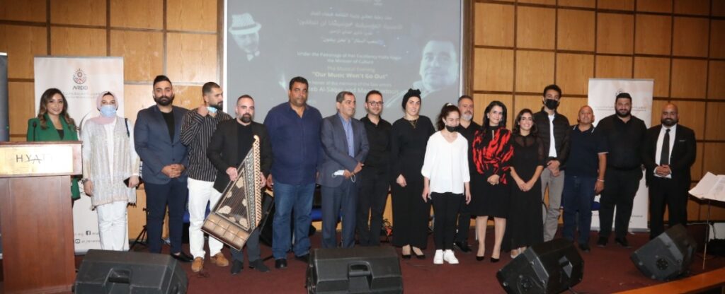 Under the patronage of the Minister of Culture, Haifa Al-Najjar, the Cultural Committee of the AlNahdaYouth Network of the Arab Renaissance for Democracy and Development ARDD, held the musical evening “Our Music Won’t Go Out”, on October 21, 2021, at Zara Theater, in memory of artist Miteb Al-Saqar and composer Maan Baidoun.