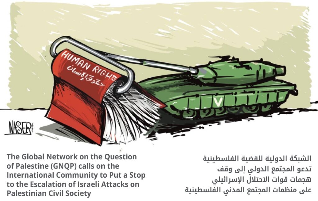 The Global Network on the Question of Palestine (GNQP) calls on the International Community to Put a Stop to the Escalation of Israeli Attacks on Palestinian Civil Society